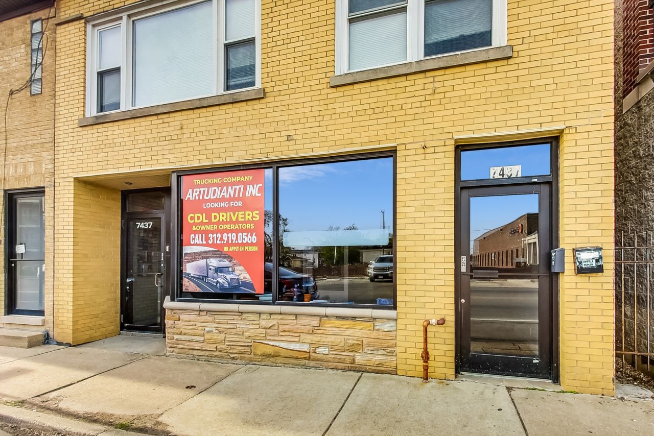 1,665 SF Renovated Commercial Space - 7437 W Irving Park Rd Recently updated commercial storefront featuring two private offices, open floor plan, brand new flooring, and fresh paint throughout. North facing windows provide excellent natural light. Includes private restroom and small kitchenette. Ideal for office users, business professionals, massage or tanning services, music shops, and other creative uses. Move in ready.